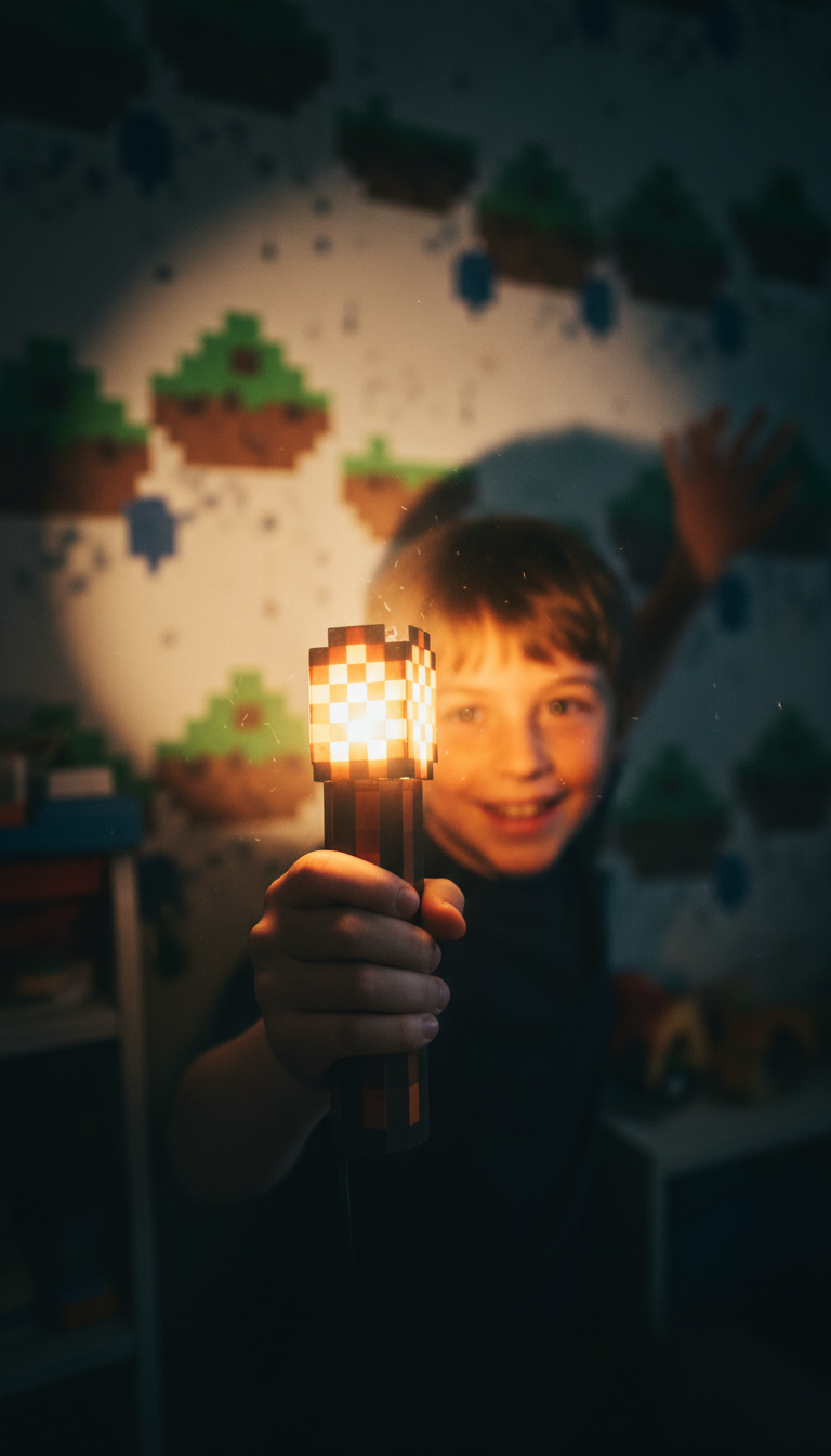Minecraftowa lampka przy łóżku, świecący miecz na ścianie, pluszak z ulubionego biomu – to te rzeczy sprawiają, że dziecko skacze z radości, zanim jeszcze otworzy instrukcję.