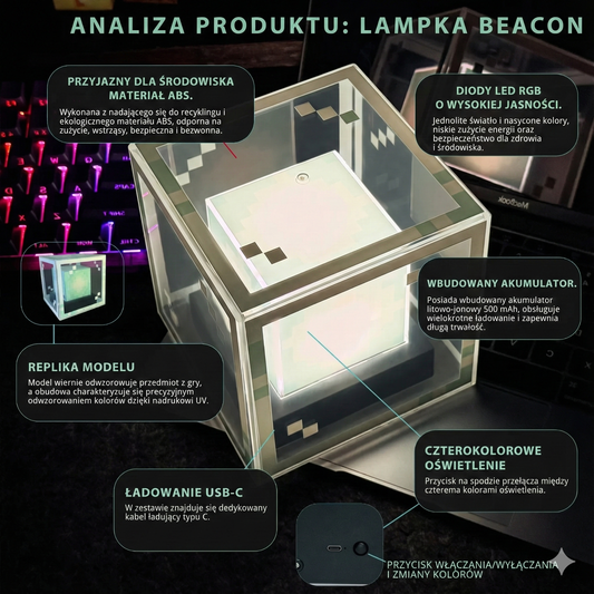 Beacon lampka LED Minezone™ w stylu Minecraft